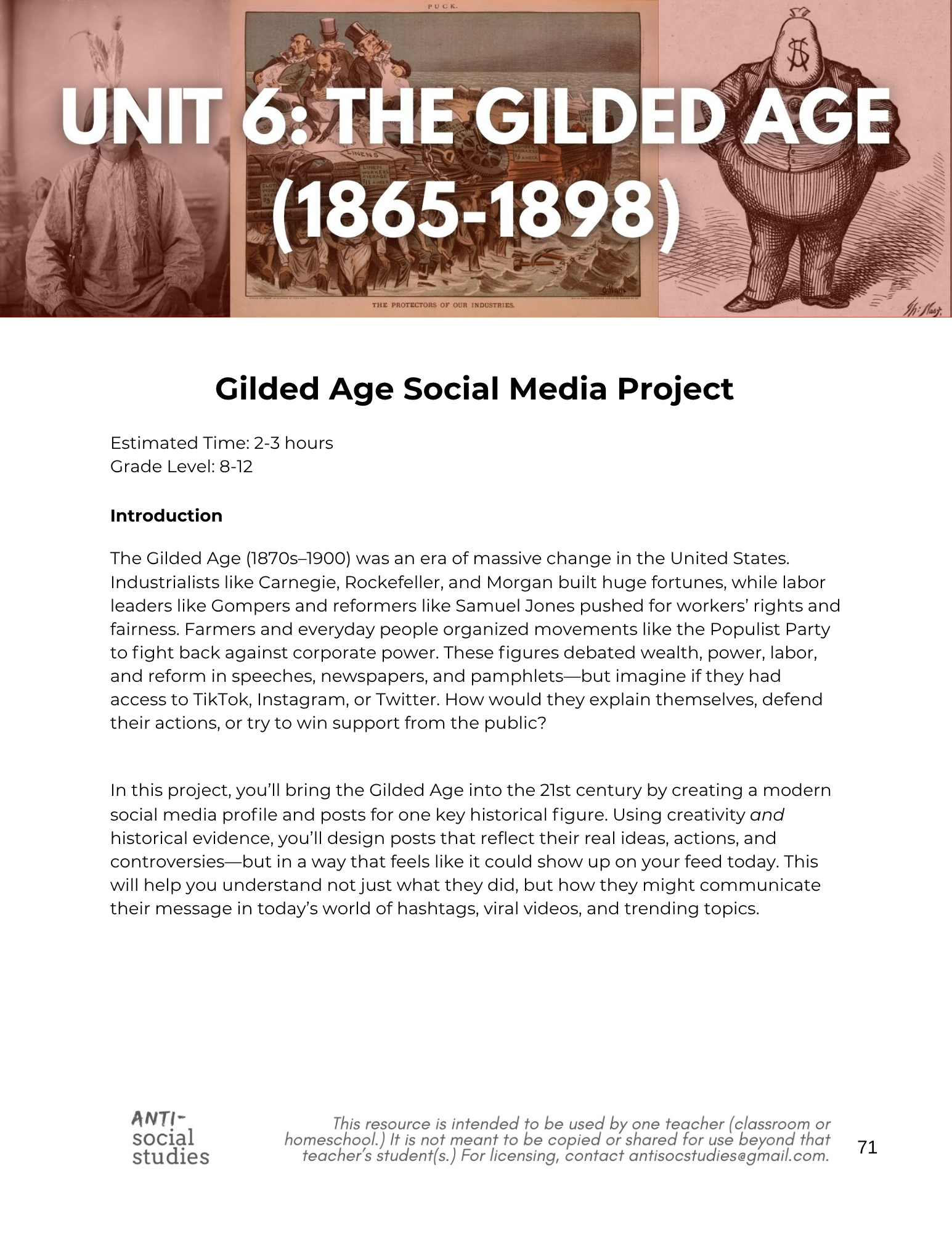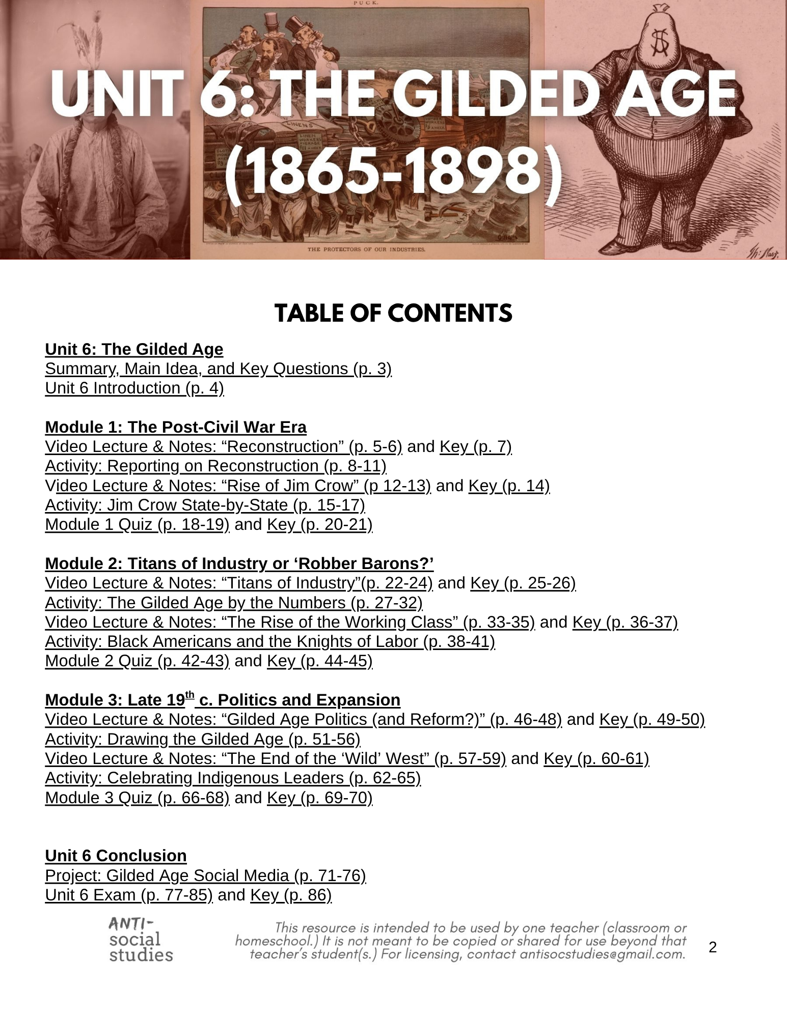 This is an 99-page downloadable PDF of ALL the materials in Unit 6 of my online course: The Rise of the United States (1865-1945.)